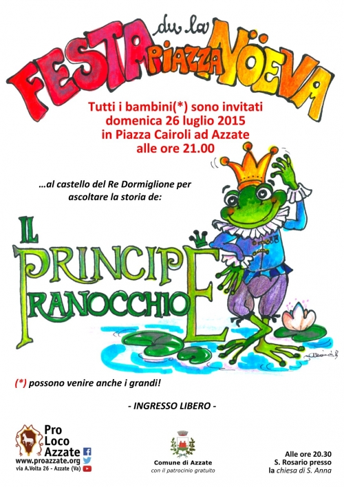 Festa di S. Anna - Piazza Cairoli con i burattini della Compagnia Roggero - Il Principe Ranocchio!Domenica 26 luglio alle ore 21.00, come da tradizione, la Pro Loco Azzate organizza nella piazza Cairoli di Azzate, in occasione di S. Anna uno spettacolo di burattini per bambini; "Il principe Ranocchio".