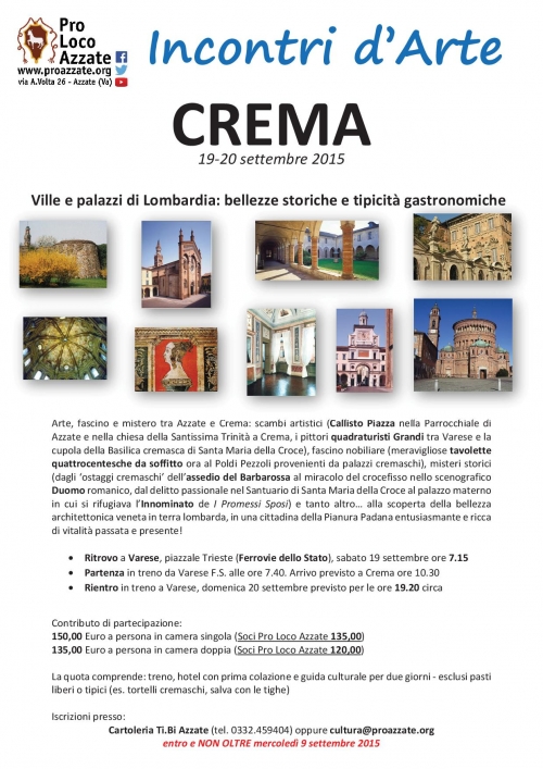 Incontri d'Arte - gita a Crema, sabato e domenica 19 e 20 settembre 2015