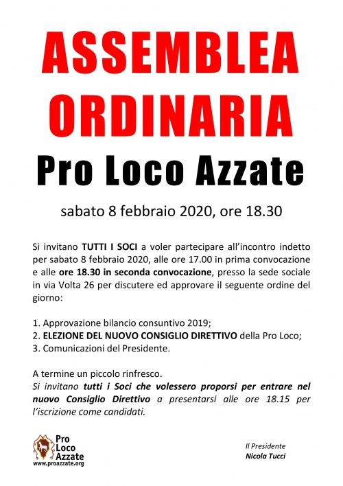 Sabato 8 febbraio 2020 - Assemblea ordinaria