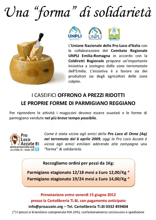 Come è stata vicina agli amici della Pro Loco di Onna (Aq) nel terremoto del 6 aprile 2009, oggi la Pro Loco Azzate è vicina agli amici emiliani aderendo alla campagna una “forma” di solidarietà.